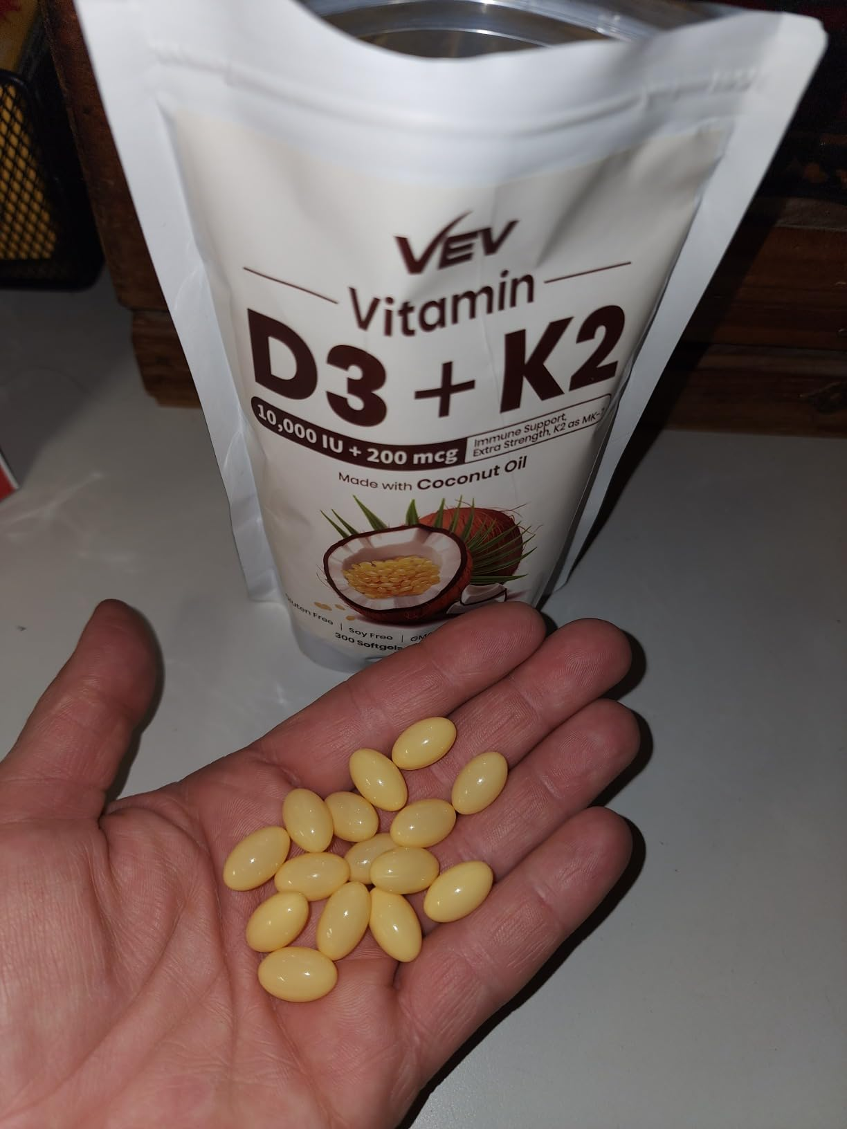VEV Vitamin D3 K2 10000 IU, 300 Coconut Oil Softgels