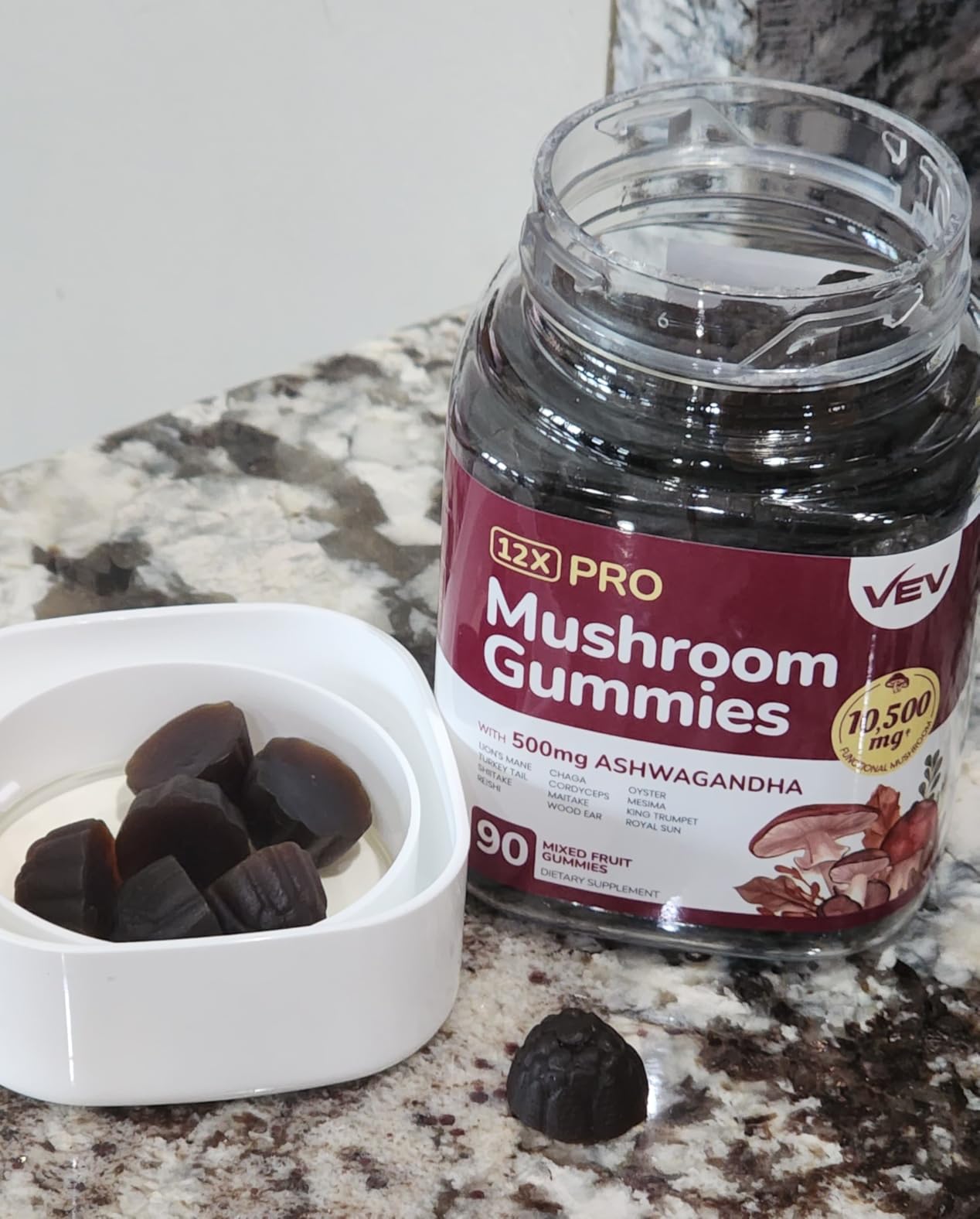 Shop now!This mushroom gummy by Vev has a good mix of mushrooms, plus some Ashwagandha. The mixed fruit flavor was good, but doesn't have any one particular flavor that stands out to me. That's ok, since the ingredients list actual fruit juice, so it shouldn't be anything artificial. I'm always glad to find good ingredients (and no added sugars!) in a gummy, since I easily get burned out taking pills and capsules.