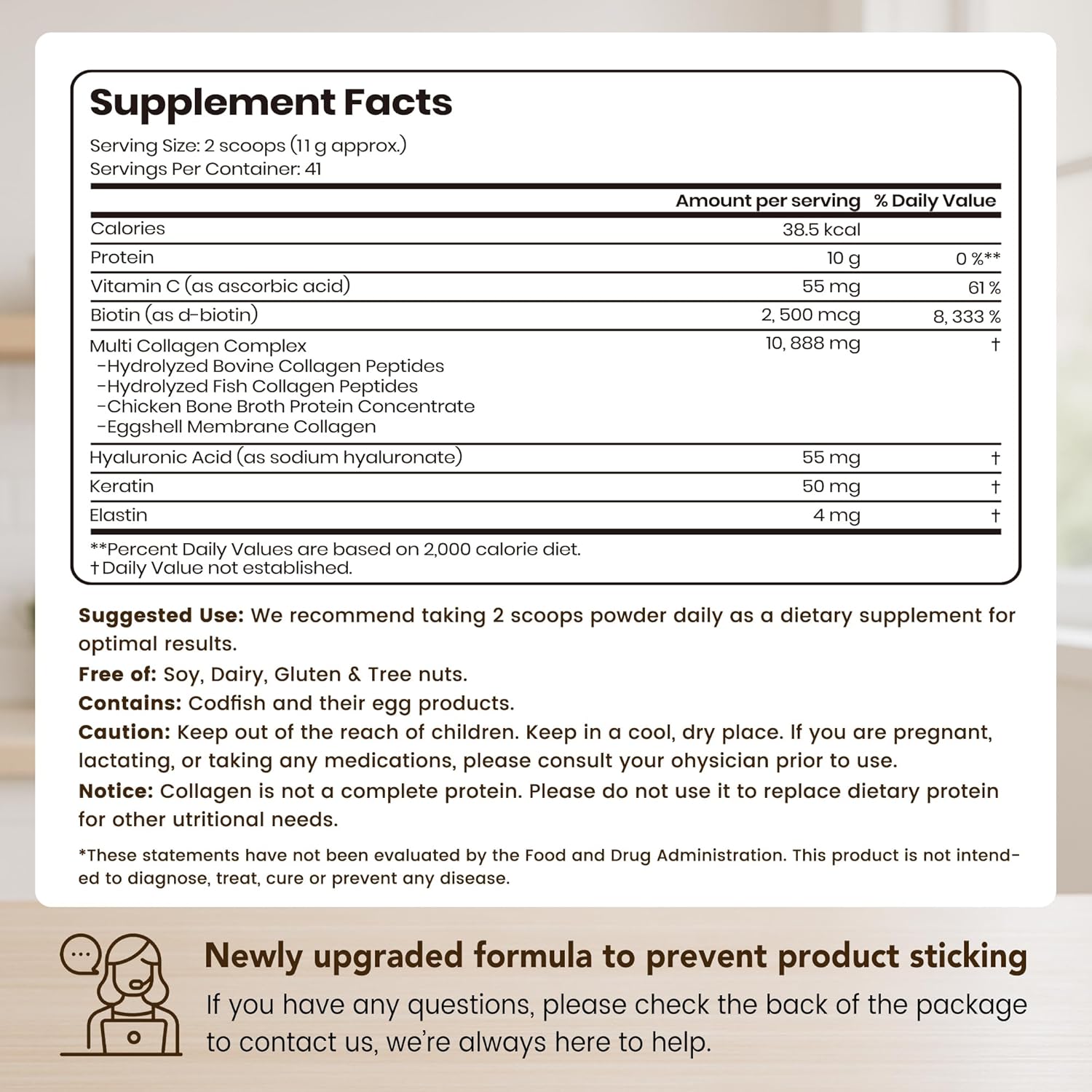 - Premium Collagen Blend: VEV Hydrolyzed Multi Collagen Peptides offers 10,888mg of collagen per serving, with added biotin for better absorption and support for skin, hair, nails, and joints.